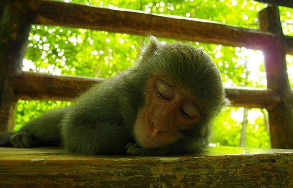 分享一張在涼亭睡覺的猴子,要很慢很慢的、小心翼翼的靠近牠,深怕把牠吵醒。