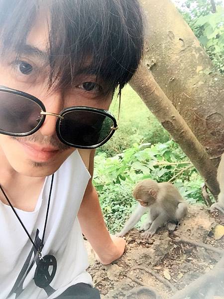 這隻小好奇的小猴子趁我自拍的時候偷牽我的手,哈哈~很可愛對吧。