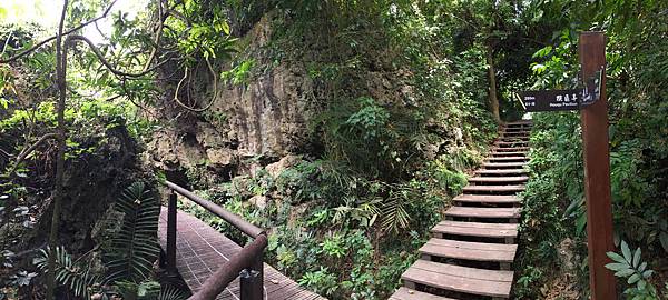 在雅座喝個水、稍作休息後我們沿著主要棧道的樓梯往下走,會來到這個岔路處。