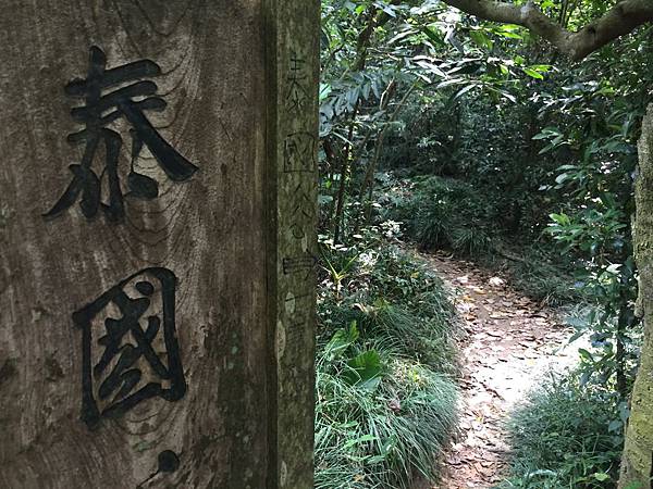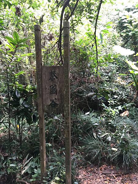 請各位注意,因為「柴山神聖樹」是一個很隱密的地方,一般沒有人引導,是真的很難找到的地方,所以這裡要特別注意,當你一路往下走,經過「猴區亭」後,就要開始注意你的右手邊,一直走大約5-10分鐘,就可以看到上面這個插在路邊很不起眼的牌子,上面寫著「泰國谷」,這裡就是前往【柴山神聖樹】岔路口。