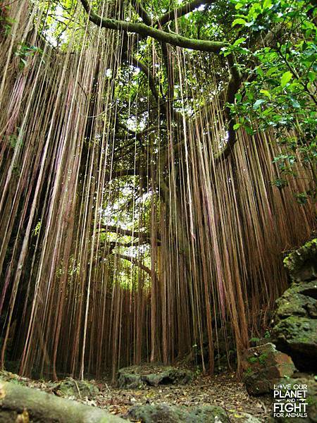 恭喜你們來到了這個美麗又神秘的秘境,這裡真的很美對吧,不過其實這張照片是我在2012年拍攝的,前幾年不知為何,似乎有不肖人士把這榕樹美麗的氣根破壞了,現在已經少了大半,風華不再依舊了,不過如果你沒看過之前的景象,來到現場看還是會覺得很美的~