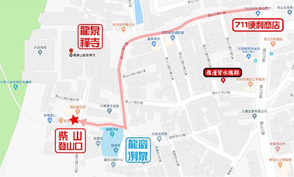 一彎進小7旁的巷道,立馬就可以看到矗立在柴山腳下的「龍泉寺」了,而緊鄰著龍泉寺的還有一個「中華佛寺協會」,正確來說登山口是在協會的旁邊,但是龍泉寺的目標比較明顯,所以通常都以它來做指標,這條路走到底,到了龍泉寺請往左轉;